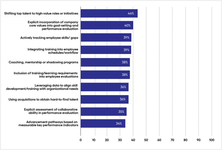 <p><span class="small">Response base: 250 senior utilities executives <br> Source: Economist Impact Survey 2022<br> Fig 2</span></p> <h5>What they're good at </h5> <ul> <li><b>Leveraging business analytics to enable productivity and performance.</b> Under continuous pressure to constrain costs and drive predictability in supply and demand, the industry has focused its analytics efforts on worker productivity (43%), supply chain excellence (40%) and improving the customer experience (39%). </li> </ul> <h5>Long way to go<br> </h5> <ul> <li><b>Fixing and unifying data insights.</b> Redundant and costly work activities result from inefficient workflows. Consider a distributor with independent business units that deploys drones to survey electric lines and identify necessary work orders. Each team (field operations, vegetation management, engineering, project management and work planning) may shape and execute work orders without informing the other groups.<br> <br> As a result, the company deploys resources to inspect or walk the same power corridor multiple times, repeatedly producing the same information on a single set of assets. Sharing plans and data among teams will help reduce costs associated with these redundant activities.<br> <br> While the industry is collecting unprecedented amounts of data and has made remarkable progress in using data to optimize business workflow processes (33%) and guide decision-making processes (25%), there’s room to do more with available data.</li> </ul> <h5>The importance of bridging the gap<br> </h5> <ul> <li><b>Using data-driven decision-making to unlock strategic business value.</b> To be truly future-ready, utilities need to make data a strategic asset across the business. The ability to organize, manage, leverage, monetize and protect shared information is an integral discipline that requires the blending of complex legacy systems, advanced technology, modernized processes and evolving customer expectations.<br> <br> Leaders will see promised gains in productivity, efficiency and cost savings emerge when unified data views are configured to unlock competitive advantage.</li> </ul> <h4>Utilities leaders must do more to cultivate talent</h4> <p><i><span class="text-regular-italic">Respondents were asked which of the following initiatives to support talent cultivation they have implemented in their company. (Percent of respondents taking action in each area)</span></i></p>